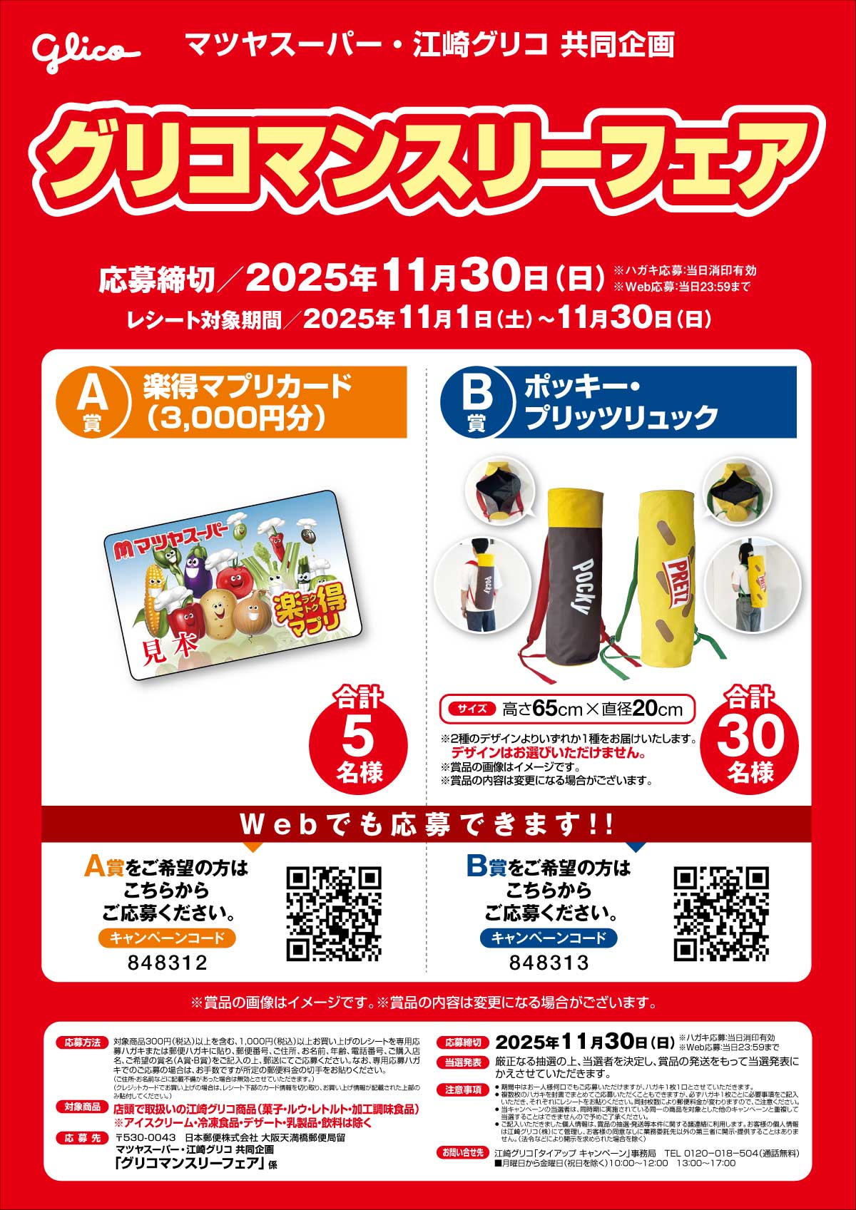 グリコマンスリーフェア(はがき応募)(マツヤスーパー ・江崎グリコ)2025/11/13掲載
