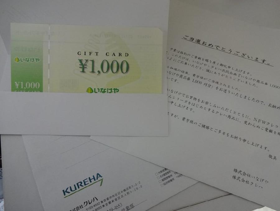キャンペーン:クレハ&いなげや共同企画 いなげや商品券1000円プレゼント