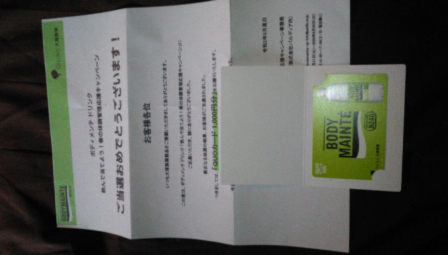 ドリンク、美味しくいただいて当たりました!最近、クオーカードの在庫が切れかけていたので嬉しいです♪ (ミリネコサン)