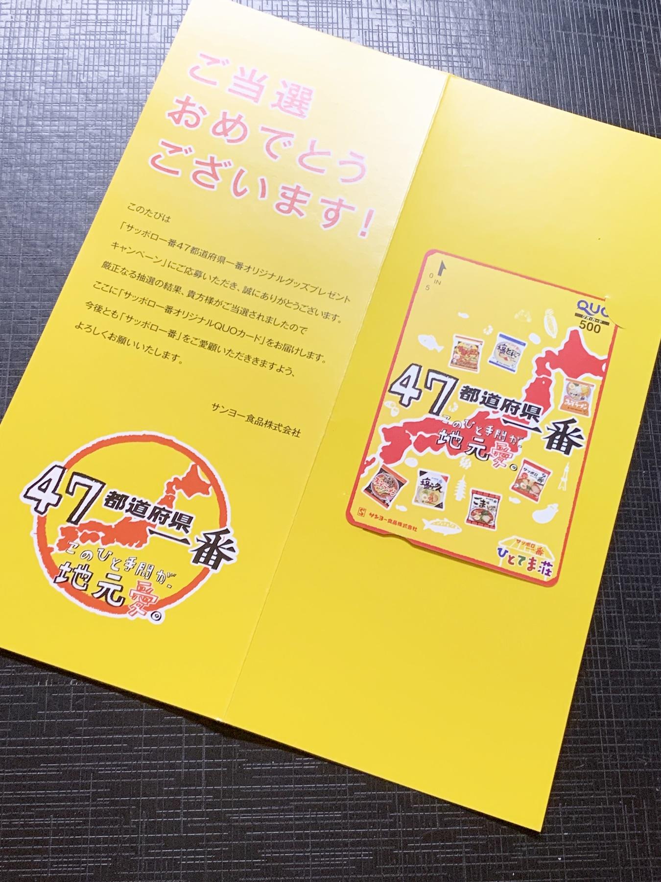 サッポロ一番オリジナルQUOカード500円分