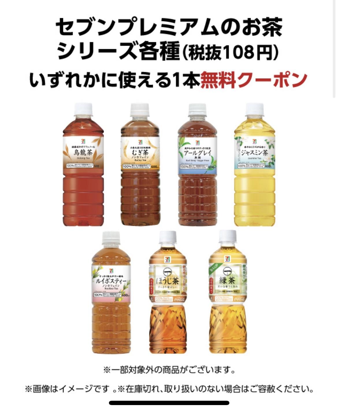 セブンプレミアムのお茶 シリーズ各種(税抜108円) いずれかに使える1本無料クーポン