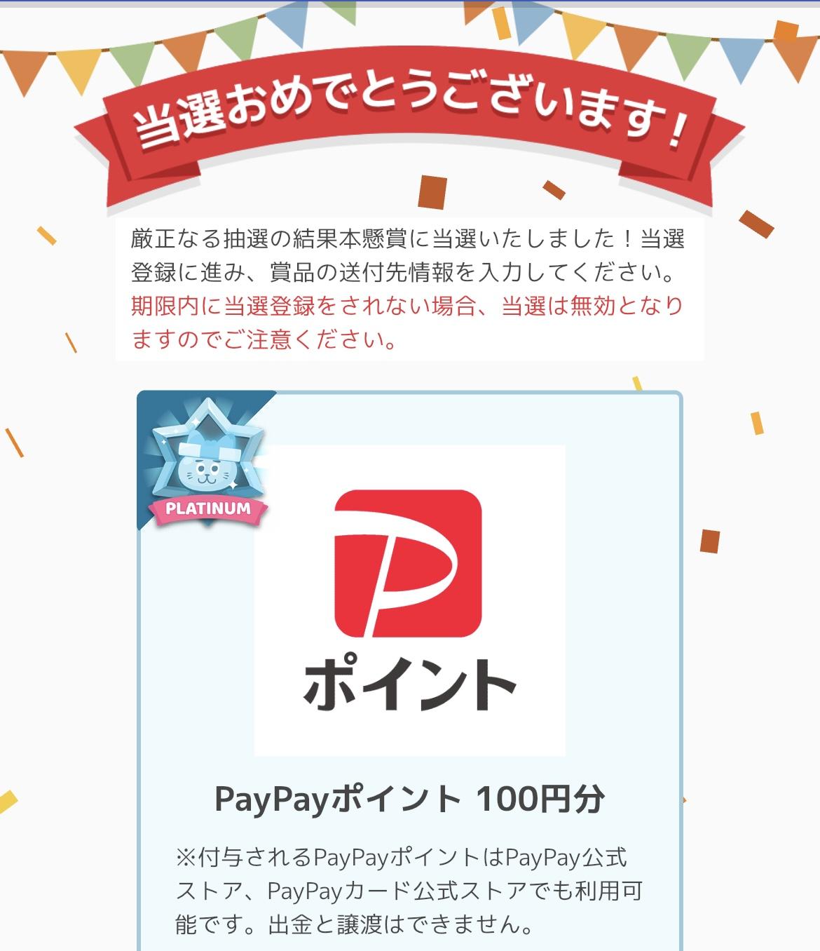 PayPayポイント 100円分:みーぷりんさんの当選品:めちゃ得コレクション めちゃコレ!