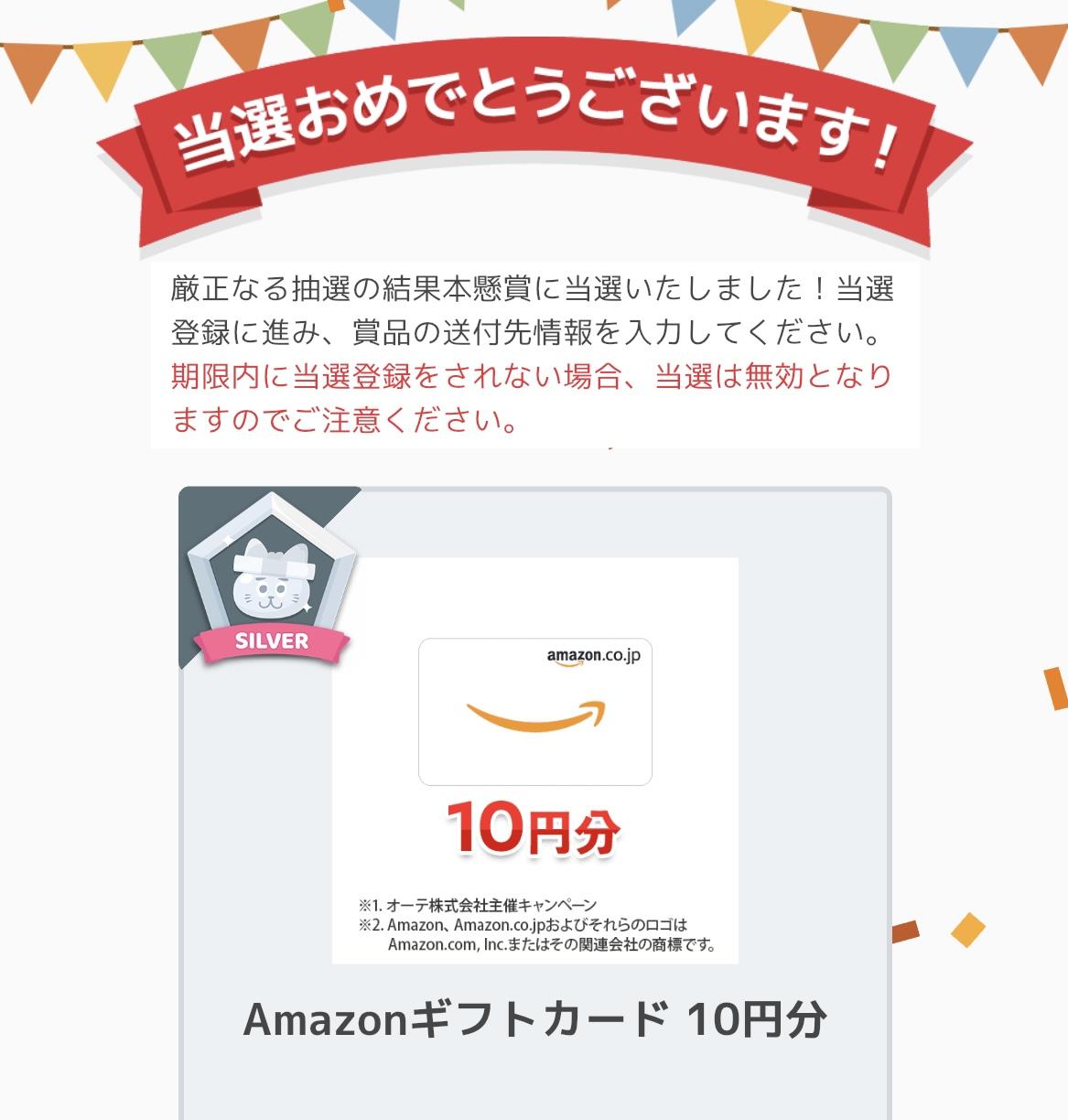 Amazonギフトカード 10円分:みーぷりんさんの当選品:めちゃ得コレクション めちゃコレ!
