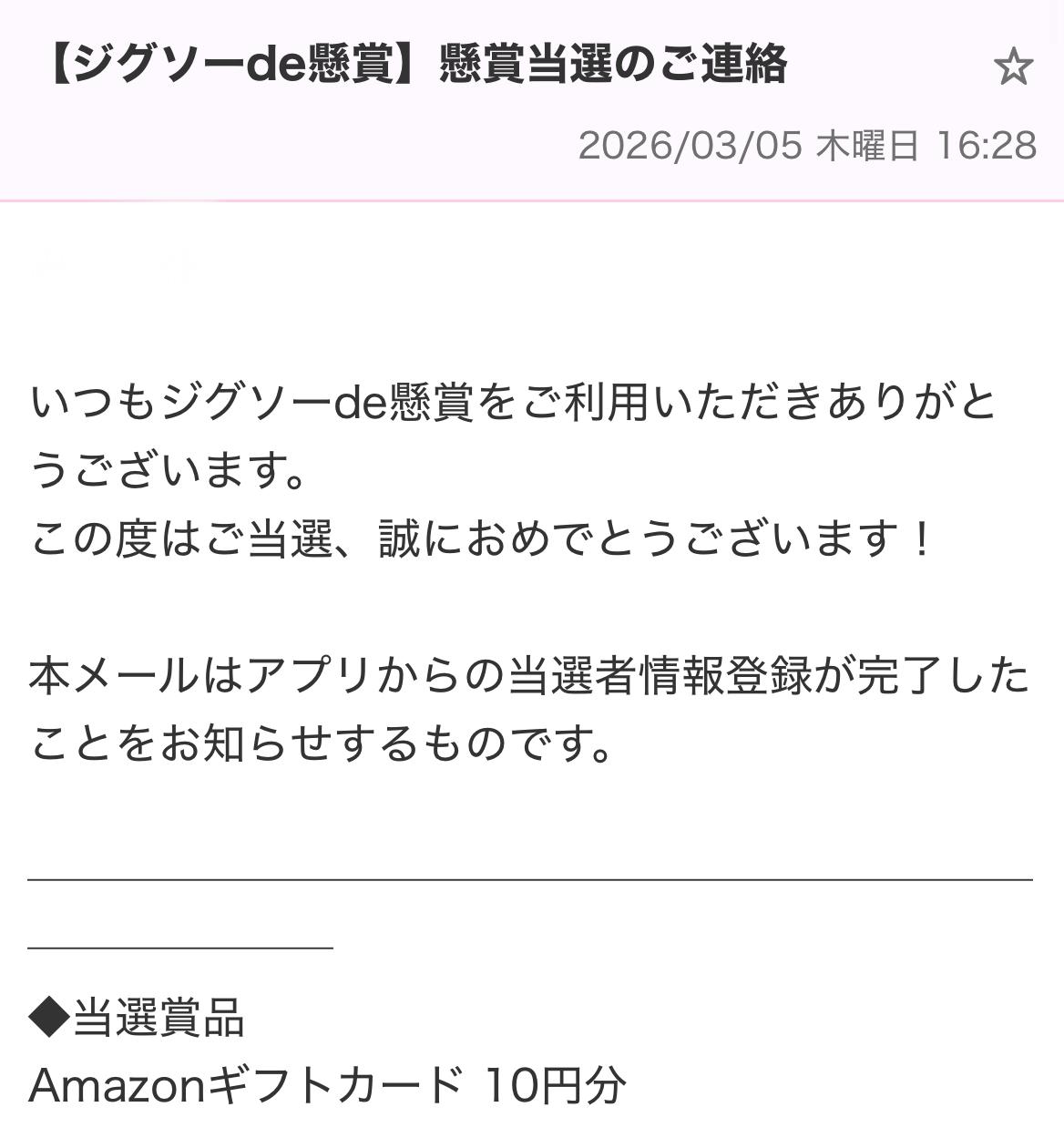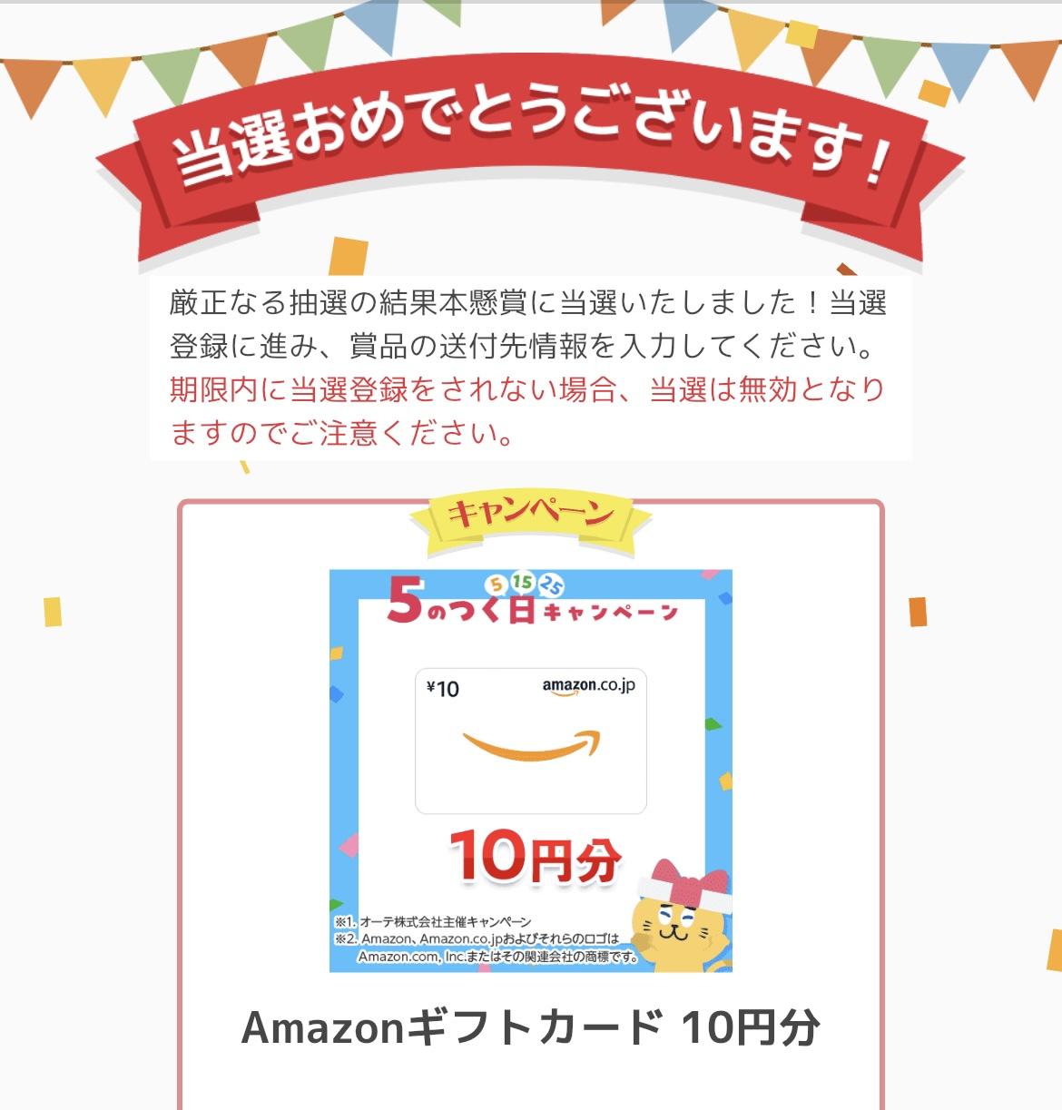Amazonギフトカード 10円分:みーぷりんさんの当選品:めちゃ得コレクション めちゃコレ!