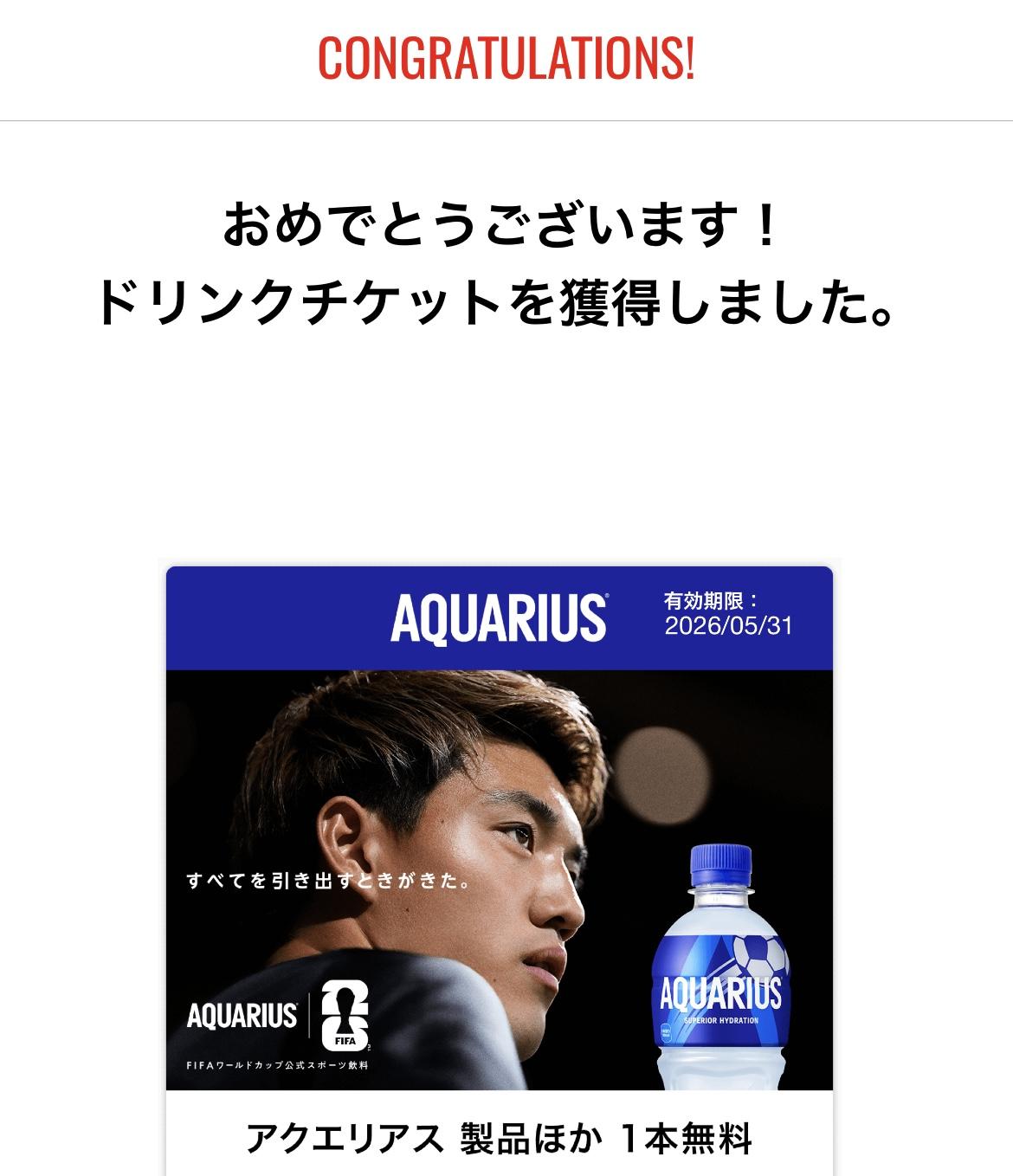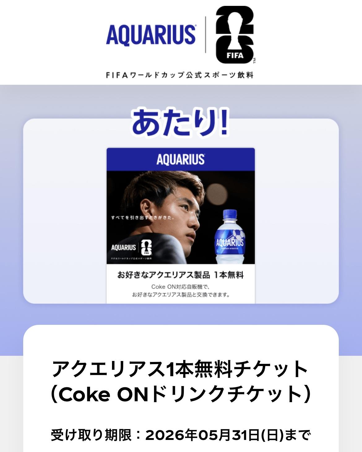 アクエリアス1本無料チケット (Coke ONドリンクチケット)